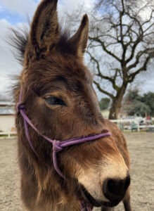 Festus is a pint sized mini-mule who believes himself to be the biggest equine at the farm. He first came to Exodus as a fire evacuee in 2020 and we all remember falling instantly in love with his tall ears, fluffy mane, and warm, mischievous eyes. So when his owner reached out looking to rehome him, we couldn’t resist. We had no idea how much this pint-sized addition to our herd would teach us.