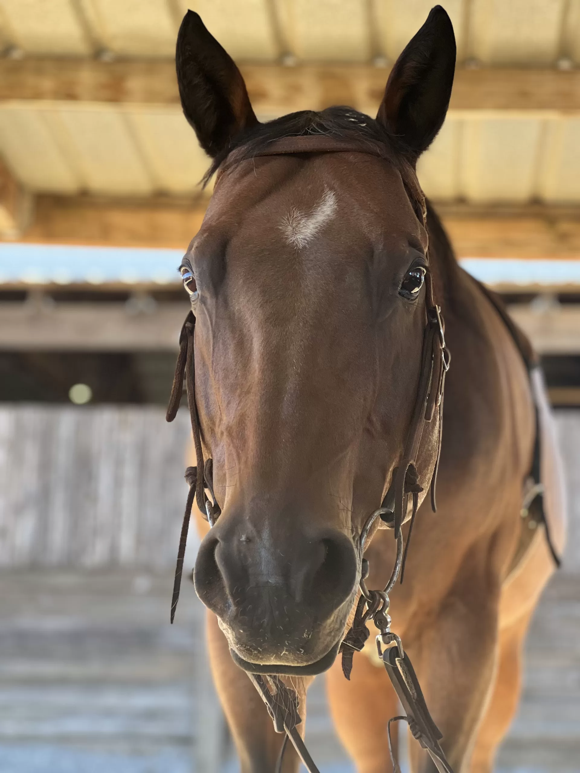 Glory came first to one of our loving and talented trainers, Lee, underweight, needing a tune-up, and blind in one eye due to a prior ranch injury. Lee and Glory formed a unique bond, over time Glory blossomed into an athletic, hard working, willing partner. Glory was easily integrated into our session program, and Lee and Glory mentored countless young men together. But we turned a chapter in Glory’s story three years ago when our veterinarian recommended that for Glory’s long term health and comfort we have his blind eye surgically removed. When Glory arrived at the vet’s office, to all of our surprise, our usually stoic Glory turned into a screaming, anxious, mess! It was then that we realized, before Glory found his way into Lee’s care, he was left at this very veterinary practice by his previous owners, who never came back for him. When we returned to pick him up after his successful surgery, we threw our arms around him, letting him know that we would NEVER leave him! Once we brought him home, Glory’s demeanor changed impressively. He became outgoing and expressive of his emotions, he is more confident, brighter, and even his coat shines brighter. Glory is an amazing reminder that though we all carry scars from our past, those scars don’t define us. And with the support of a caring community, we can move beyond past trauma and find new joy and purpose.
